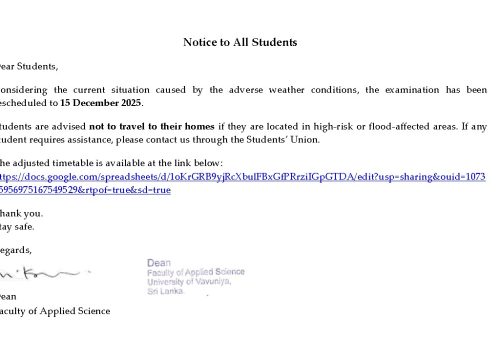 All Student of Faculty of Applied Science are requested to renew their registration for the academic year…